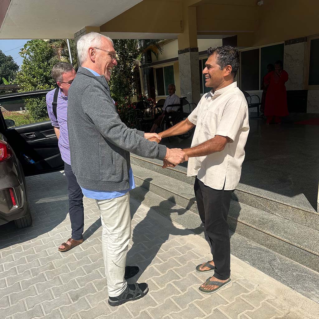 Am nächsten Tag sind wir in aller Frühe nach Dornahalli gefahren, wo die Mitbrüder ein Heim für ausgesetzte, mittellose und ältere Menschen unterhalten, die kein Zuhause mehr haben. Auch dort gibt es rund um das Haus eine kleine Landwirtschaft mit vielen Tieren und Pflanzen, die von den Mitbrüdern gepflegt und versorgt werden. Das Haus wurde vor Kurzem – auch mit Mitteln unseres Missionssekretariats, beziehungsweise unserer Wohltäterinnen und Wohltäter – erweitert und ausgebaut. So war es schön, dass aus diesem Anlass die Mitbrüder einige Gebäudeteile segnen und eröffnen konnten und außerdem neue Bäume und Rosen pflanzen konnten, um damit auch zum Ausdruck zu bringen, dass dieses Werk weiter wachsen solle.