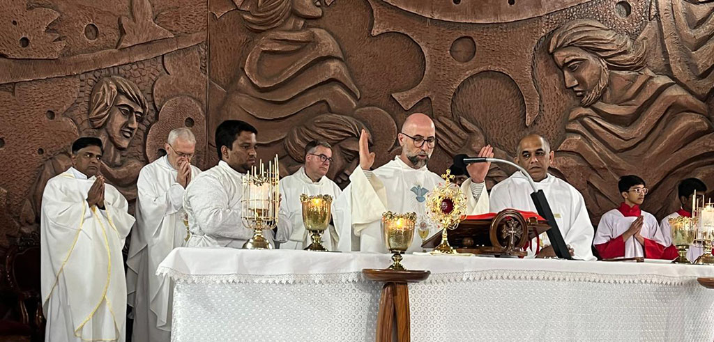 Zum Pallottifest kamen dort einige Mitbrüder zusammen, die in der Region in unterschiedlichen Bereichen tätig sind. Unter ihnen auch der neue Provinzial der Bangalore-Provinz, Pater Michael d’Almeida, der viele Jahre in der Schweiz gearbeitet hat und dort kürzlich seinen Antrittsbesuch gemacht hat.