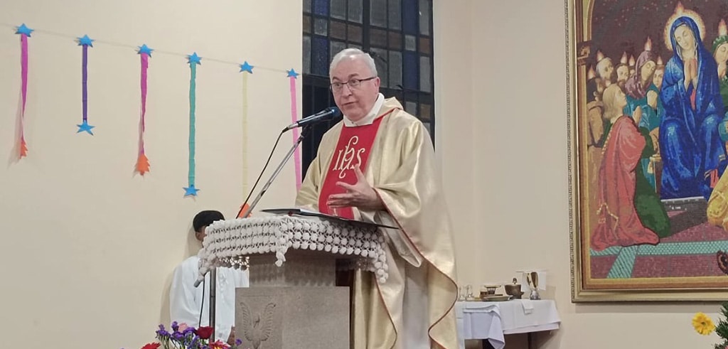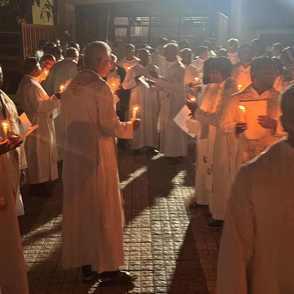 Am Abend fand dann im Provinzialat der Bangalore-Provinz das Pallottifest statt. In seiner Predigt erinnerte Pater Michael d’Almeida an die Herausforderungen und Probleme, vor denen die süddeutschen Mitbrüder vor 75 Jahren standen.