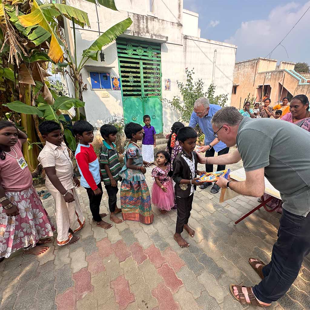 Von Pillar aus besuchten wir noch andere pallottinische Standorte: Salem, wo Pater Jerome ein Hilfsprojekt für HIV-Infizierte leitet, sowie ein Ausbildungshaus für Frauen eröffnet hat, wo sie Ausbildungen in Kosmetik, Schneiderei und Stickerei machen können. Auf dem Rückweg besuchten wir gemeinsam mit Pater Jerome in drei Dörfern Kinder, die zu den „Dalits“ gehören, der untersten Kaste im indischen Kastensystem. Um ihnen eine gute Ausbildung zu ermöglichen, unterstützt Pater Jerome sie mit eigenen Lehrerinnen und gibt ihnen Ergänzungsunterricht!