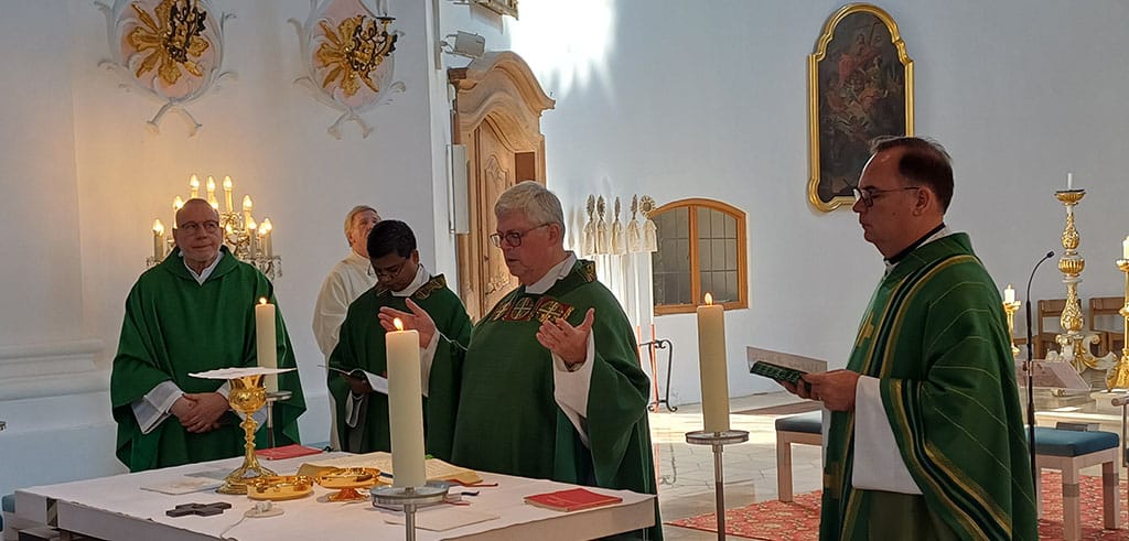 Seit ein paar Tagen sind die Mitbrüder der pallottinischen Generalleitung aus Rom in Friedberg zu Besuch. Am Sonntag, dem 21. September 2025 war Pater General Zenon Hanas in der Pallottikirche zu Gast, der Vizegeneral Pater Derry Murphy besucht St. Jakob und zwei Generalräte besuchten die Wallfahrtskirche Herrgottsruh.