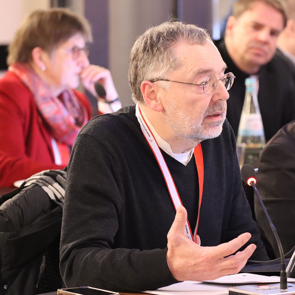 Bischof Dr. Michael Gerber, Vizepräsident der Synodalversammlung, erinnerte an die gesellschaftliche Dimension der Aufgabe der Kirche: „Wir stehen ein für die Würde des Menschen, für Solidarität in der Gesellschaft. Die aktuellen Herausforderungen verbinden uns mit vielen Gruppen in der Gesellschaft, die sich für eine freiheitliche Grundordnung einsetzen. Der hl. Johannes Don Bosco, dessen Gedenktag heute gefeiert wird, steht für eine Kirche, die sich hat berühren lassen vom Schicksal junger, marginalisierter und oft verletzter Menschen und für das Engagement, dass diese Menschen sich als Subjekt, als wirksam erfahren. In dieser Spur müssen wir auch heute unterwegs sein.“ Er betonte, dass die Mitglieder der Synodalkonferenz aus unterschiedlichen Kontexten kommen. Sie alle hätten die Aufgabe, das große Ganze im Blick zu haben: Die drängenden Fragen unserer Kirche und unserer Gesellschaft heute.