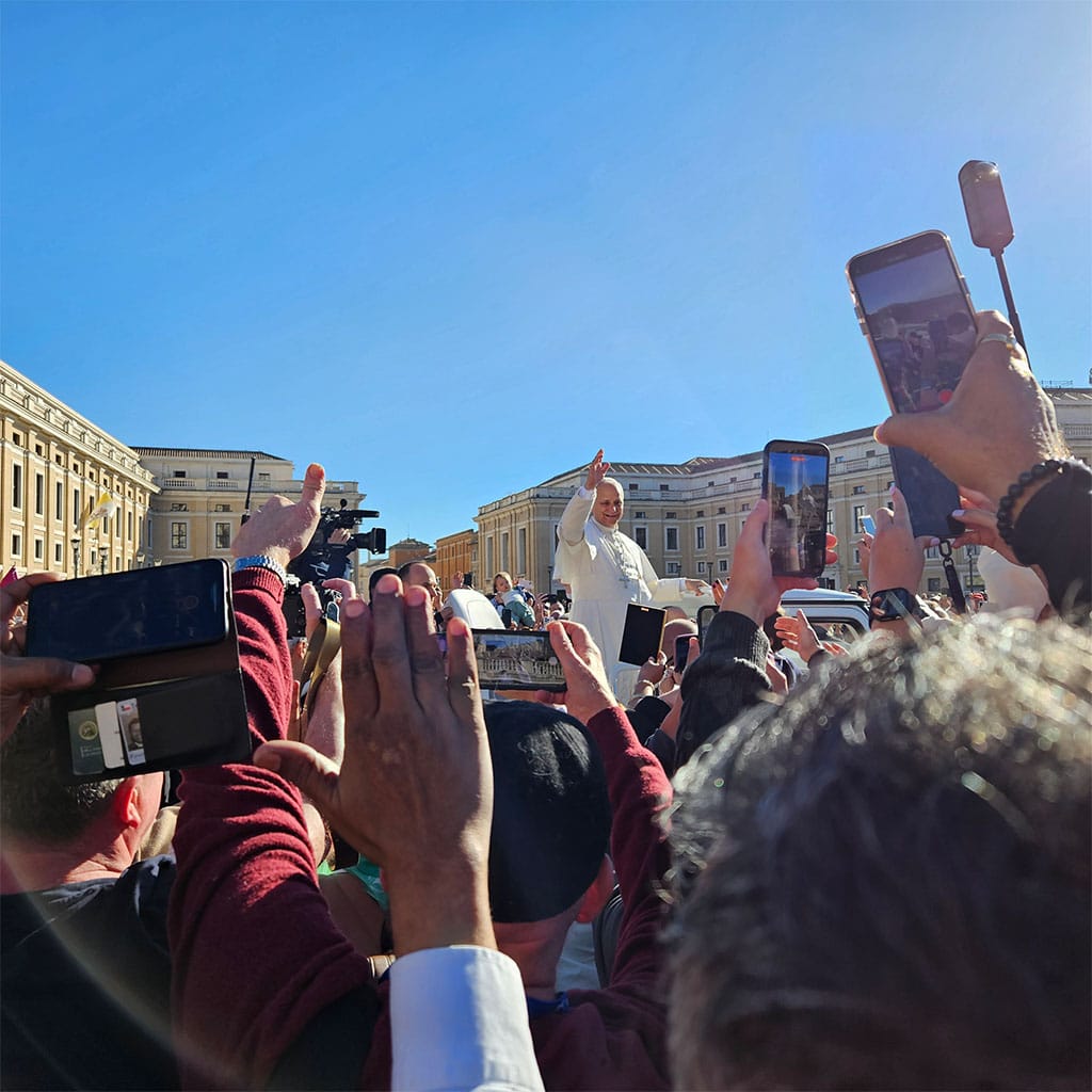 Am Mittwoch bei der Generalaudienz auf dem Petersplatz erlebten alle Mitglieder der Pilgergruppe zum ersten Mal den neuen Papst Leo XIV. Zusammen mit über 50.000 Gläubigen jubelten wir dem Papst begeistert zu, beteten mit ihm, hörten seine Verkündigung und empfingen seinen Segen. Diese lebendige Begegnung mit dem Papst hat die ganze Pilgergruppe tief berührt und außerordentlich begeistert.