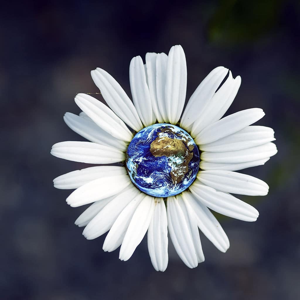 Quelle: Blumenbild mit Weltkugel, © danimages Adobe Stock